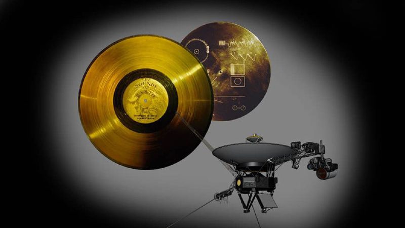 A Voyager-1 jelenleg csaknem 13 milliárd mérföldre, testvére körülbelül 11 milliárd mérföldre jár a Földtől. Arra a legkevésbé sem valószínű esetre, ha idegen civilizációk találkoznának a földi hírvivővel, a Voyager-ikrek egy-egy arannyal bevont lemezt visznek magukkal. A korong címe A Föld hangjai. A lemezhez lemezjátszót, ahhoz pedig használati utasítást is mellékelt a NASA 1977-ben.