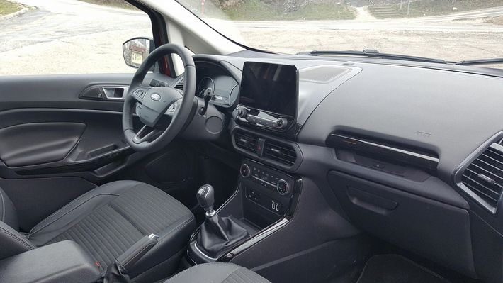 Az EcoSport utasterét sem hagyták változatlanul. A korábbi fordos enteriőr helyét immáron a Fiestában megismert új elrendezés vette át, melynek közepét itt is az érintőkijelző monitor uralja. Az első ülések kényelmesek, viszont a hátsó traktus az autó méreteinél fogva szűkös, inkább egy négytagú család számra lehet alternatíva, bár ennek némileg ellentmond a csomagtér mérete. Igaz ez utóbbi állítható magasságú, teljes űrtartalma 334 liter. És, ha már kutakodunk, a poggyásztérben mindenképpen szót érdemel a csomagtérajtó, ugyanis az Ecosport újra rajzolásakor meghagyták a korábbi generáció klasszikusokat idéző „zsanérzatát”. Az oldalra nyíló ajtó kicsit nosztalgikus megoldásnak tűnik, de ha rendelünk rá egy külső pótkeréktartó elemet, akkor igazán dögös összképet kapunk. Egy biztos, szakmán innen és túl is ez egy megosztó momentum lesz.