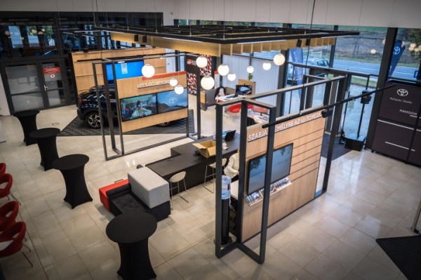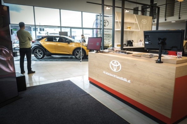 Az új és a jövőben sorra megújuló Toyota márkakereskedések kialakítása és berendezése a korábbinál sokkal szellősebb, marasztalóbb hatást kelt, egyszerre modern és időtálló. Az ügyfelek kedvükre ismerkedhetnek a Toyota modelljeivel és szolgáltatásaival a kihelyezett, logikusan, tematikusan elhelyezett digitális eszközök segítségével, az értékesítési tanácsadó kollégák pedig időt hagynak a márkaélményben való elmerülésre, az ügyfelek pedig értékelik, hogy nem érzik ’nyomás alatt’ magukat, közben mégis érzékelik, hogy a kollégák bármikor rendelkezésre állnak, amennyiben ezt igénylik.