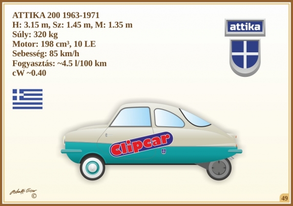 Az Attika egyike a nem túl népes görög gyártmányú autók egyike. Le sem tagadhatja, hogy a formája a német FULDAMOBIL S7 másolata. A típus rendkívül ritka, csak egy lepusztult példányt találtam, melyet 2 ezer Euróért kínáltak. Jó állapotú modell árára nem találtam hiteles adatot.
