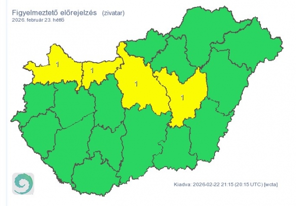 Zivatar alakulhat ki több vármegyében, az elsődleges veszélyforrást a villámlás jelenti, emellett esetenként szélerősödés, jégeső előfordulhat!
