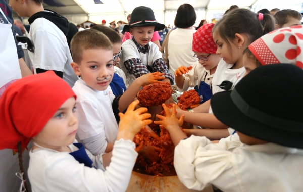 Két korcsoportban lehetett nevezni: óvodás korú gyerekek és általános iskola 1-4. évfolyamos tanulói, valamint általános iskola 5-8-os tanulói, középiskolás diákok, főiskolai, egyetemi hallgatók. Négyszáz csapat gyúrja a kolbászt mindkét óriássátorban, a Mokryban és a Munkácsyban. Az indulók öt kiló húsból készítenek sütni való kolbászt. A zsűri elnöke Prohászka Béla, a Magyar Nemzeti Értékek és Hungarikumok Szövetségének alelnöke.