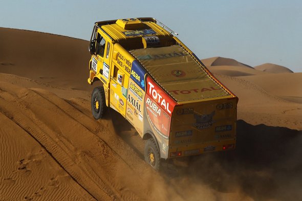 „Hosszú napok óta először fordult elő, hogy technikai problémák nélkül tudtunk teljesíteni egy szakaszt. Ez mindenképpen örvendetes, igaz, a szakasz nehézsége komoly megpróbáltatások elé állított bennünket is. Elég régen fordult elő, hogy előkerültek az ásók a kamionból, de ma ez is megtörtént. A második ellenőrzőpont előtt elástuk magunkat egy picit, így némi időre volt szükség, mire kiszabadultunk. Egyébként minden rendben, aggaszt azonban, hogy kamionos versenytársunk és jóbarátunk, Noel Essers még mindig ott rostokol a tegnapi szakaszon, ahol beragadt. Úgy értesültünk, hogy jól van, de természetesen törjük a fejünket azon, hogyan tudnánk segíteni neki” – fogalmazott Kovács Miklós, aki a Shibalov által vezetett kamionos összesítésben a 6. helyen állomásozik.
