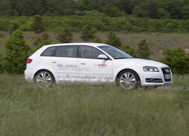 A mild hibrid a belépő a hibridek közé. Önálló elektromos járműhajtás nélküli kialakítás, de a fékezési energia visszanyerésén túl „booster”, azaz hozzáadott teljesítmény leadásra képes. Számos korábbi modellnél láttuk, hogy a generátor olyan villamos gép, mely egyben motor is. Motorüzemben szíjjal hajtja a belső égésű motor főtengelyét, ezen keresztül az autót, kb. 10 kW-tal növelve gyorsításkor a teljesítményt. Ebben nincs újdonság. Az újdonság az, de ez sem igazán mai jövevény, hogy mindennek a fedélzeti feszültsége 48 V. Ma ez a téma nagyon foglalkoztatja a szakembereket, még nem késő jelentkezni a „3rd International Conference Automotive 48 V Power Supply Systems” tárgyú konferenciára, melyet 2015. november 24 – 26-a között tartanak, Düsseldorfban, a Hotel Hiltonban.