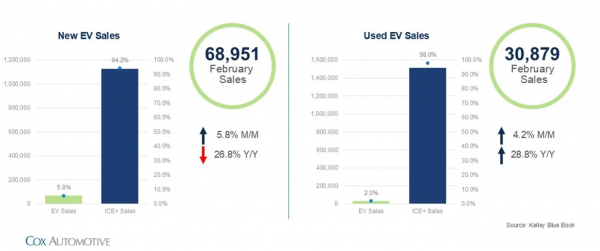 Erre egy amerikai kimutatás hívja fel a figyelmet, amiben az látszik, hogy az új villanyautó eladások 27%-kal csökkentek idén februárban a tavalyi évhez képest. Még úgy is, hogy idén kimutathatóan olcsóbbak lettek az elektromos autók, az iráni háború okozta üzemanyag ár növekedés hatása pedig még be sem gyűrűzött a piacra. Ugyanakkor az is látszik, hogy a használt EV piac csendben növekedésnek indult. A használt elektromos autók értékesítésének száma 29%-kal növekedett. Szóval úgy tűnik, hogy kereslet – arányosan még mindig kicsi kereslet – van a villanyautókra, csupán egy másik piacon.