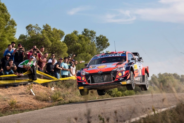 Elfyn Evans a Finnországban mutatott jó formáját átmentette Spanyolországra is, az első három szakaszt megnyerte a Toyotával, és délután is csak az ihletett formában versenyző Neuville tudta megelőzni. A walesi pilótának nagyon fontos, hogy jó eredményt érjen el, mert 24 pont a hátránya Ogier-val szemben, és ezen kívül már csak egy verseny lesz idén (egy versenyen maximálisan 30 pontot lehet szerezni). az ötödik szakaszon majdnem vége lett a világbajnoki álmainak, amikor egy gyors jobbosban megúszott a Yaris WRC a felhordott murván, és a bal hátsó kereke a padkát is megcsípte. Szerencsére nem lett defekt, és a felni sem rongálódott meg, így Evans simán tovább tudott száguldani.