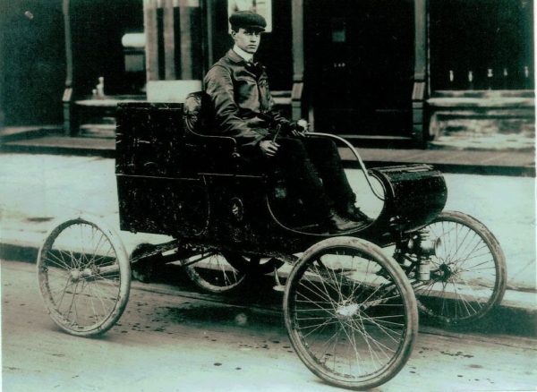 Roy Chapin, miután megtette a Detroit-New York távolságot. Átlagsebessége úgy 22 km/óra volt az 1300 kilométer során. Benzinből úgy 114 liter fogyott, vízből pedig több mint 300 liter. Chapin később megalapította a Hudson Motor Company-t 1909-ben.