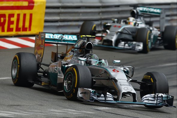 Nico Rosberg a tavalyi év után ismét győzött a Monacói Nagydíjon, idei győzelme azt jelenti, hogy visszavette a vezetést a világbajnoki pontversenyben. A német jól indult a rajtnál, és elsőként fordult be az első kanyarban, Hamilton megtartotta a 2. helyet. Mögöttük viszont nagy helyezkedés kezdődött: Sebastian Vettel feljött harmadiknak, mögé pedig a remekül induló Kimi Räikkönen zárkózott fel, aki lerajtolta csapattársát, Fernando Alonsót. Vettelnek nem sokkal később fel kellett adnia a futamot, mert a Red Bulljából elszállt minden motorerő a turbó hibája miatt. Ez talán összefüggésben volt azzal, hogy az időmérőn elromlott az autóban a hibrid ERS rendszer, és talán nem tudták teljesen megjavítani a hajtásláncot a futamra.