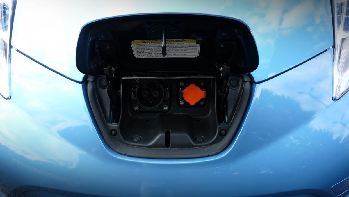Baloldalon a gyorstöltő csatlakozó aljzata, jobb oldalon a konnektoros töltés kivezetése