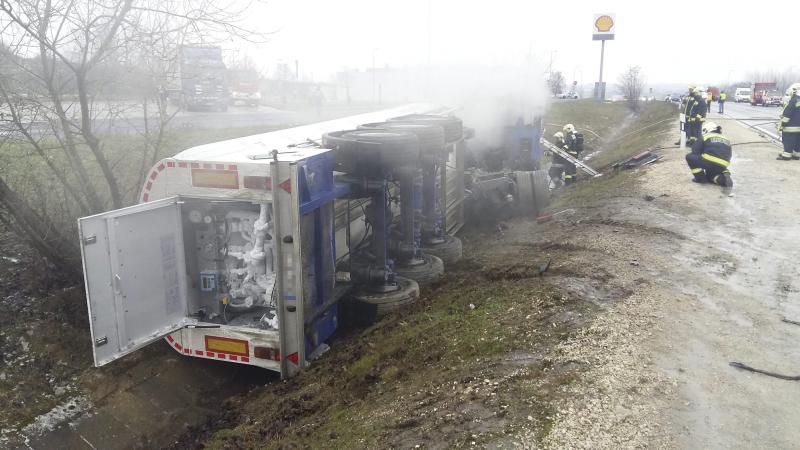 Csámpai Attila korábban elmondta, hogy az ütközést követően mindkét kocsi kigyulladt, és a vízelvezető árokba csapódott. A kamion szállítmánya miatt minden eshetőségre felkészülve 100 méteres sugarú biztonsági zónát jelöltek ki, eközben több mint 20 tűzoltó oltotta a lángoló járműveket. A helyszínen tartózkodik a megyei katasztrófavédelem műveleti szolgálata is - tette hozzá a szóvivő.