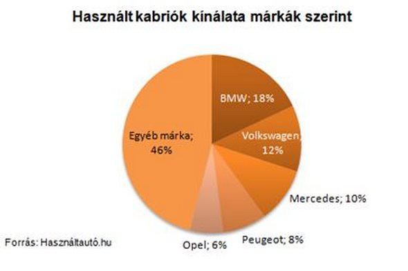 A Használtautó.hu adatai szerint a szezonon kívüli hónapokhoz képest másfélszeresére ugrott a nyitott utasterű autók kereslete és kínálata egyaránt. A kínálatban szereplő autók 40 százaléka három márka, a BMW, a Volkswagen és a Mercedes képviselője. A legmagasabb áron, több mint 65 millió forintért egy Ferrarit hirdetnek, de már 100-150 ezerért is találunk működőképes példányokat a hazai piacon.