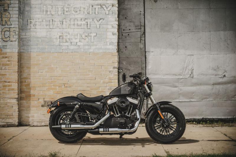 Az új Forty-Eight motorkerékpár erőteljes beállítottságú. A megtermett 130 mm-es első gumiabroncs 49 mm-es villákhoz csatlakozik, amelyet masszív kovácsolt alumínium alsó-felső villahidak és egy alumínium villamerevítő tesz biztonságossá. A klasszikus 8 literes mogyoró alakú benzintartály keskeny atléta csípőt kölcsönöz a motornak. A levágott sárvédők hagyják a kerékgumit felsejleni. A fekete, a színezett és a króm részek tökéletes egyensúlya a motort merész megjelenésűvé varázsolja.