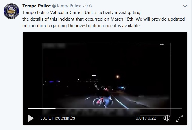 A felvételen – amely itt érhető el – az látható, hogy egy megvilágítatlan szakaszon próbálja áttolni kerékpárját egy nő az úton. Az egyértelműen kiderül, hogy a nő volt a szabálytalan, s ha ember vezeti az autót, akkor is szinte bizonyosan elkerülhetetlen a baleset. Az már más kérdés, hogy az autó fedélzeti rendszereinek alighanem így is érzékelniük kellett volna az úttestre lépő nőt. És látható az is, hogy ugyan a volán mögött ott ült egy ember, ám nem ő vezetett, s jobbára nem az utat figyelte.