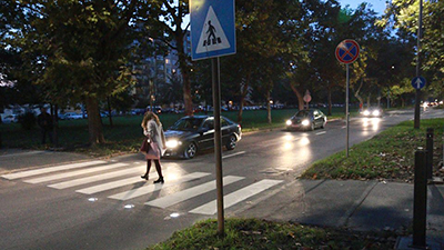 Radar észleli a közeledő gépjárműveket és automatikusan működésbe hozzák a járdába telepített LED-lámpákat, ezek jelzik a gyalogosnak a közeledő járművet, így segítve a körültekintő áthaladást.