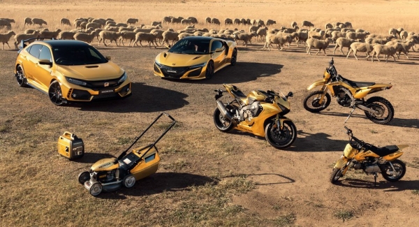 Nem kevesebb, mint 50 éve, 1969 óta van jelen a Honda az ausztrál piacon, a jeles alkalmat pedig úgy gondolták, hogy egyedi formában ünneplik meg. Autóktól a motorokig, fűnyírótól a generátorig, a Honda mindenféle termékét arany fóliával borította, hogy így ünnepelje a japán márka „arany” évfordulóját. A leglátványosabbak természetesen a Honda csúcsautói: egy NSX és egy Civic Type R hot hatch is aranyba borult az ünneplés idejére. Rajtuk kívül egy CBR100RR superbike, egy CRF450L enduromotor és egy CRF50F gyerekmotor is a kollekció része. Itt azonban nem álltak meg, némi öniróniával élve egy HRU19 Buffalo Premium fűnyírót is bearanyoztak, ami egyébként helyi tervezésű és gyártású, végül pedig egy EU22i generátort is belevettek a buliba. Tökéletesen beteg.