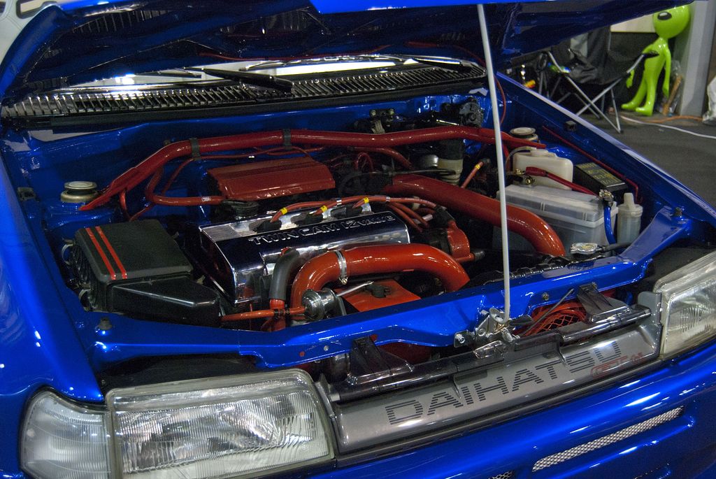 Némi erősítésre szükség is volt-e fronton, hiszen a motor sem maradt változatlanul. A Daihatsu-t gyárilag a kisebbik, 993 köbcentis háromhengeres turbómotorral (GTti) szerelték, mindezt az eredeti helyett egy 1,2 baron töltő IHI csiga, izmosabb lefújószelep, HKS töltőnyomás szabályzó és Magnecor gyújtás támogatja, hajtás oldalon pedig könnyített lendkerék és Exedy kuplung került a listába.