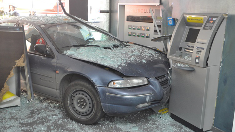 Hatalmas csörömpölés közepette hajtott be az autó a bankba az ausztriai Voitsberg településen, Stájerországban - írja az orf.at