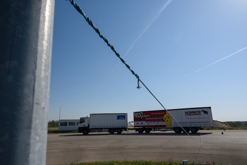 A gyakorlati vezetéssel töltött félórás feladatsor mellett a napi munkával kapcsolatos rakományrögzítési, járműbiztonsági feladatsort is meg kellett oldaniuk a versenyzőknek egy külön erre a célra kialakított és berendezett félpótkocsin.