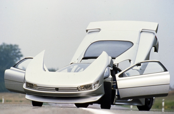 Ezt vetítette előre a Quasar: egy 1984-es tanulmányautó, amely a B-csoportos Peugeot 205 T16 raliautó technológiáját plántálta bele egy futurisztikus karosszériába. Szárnyas ajtóival, áramvonalas formavilágával és modern funkciókkal telezsúfolt, fényűző belső terével a Quasar ott kopogtatott az automobil arisztokráciájának kapujában, bebocsátást mégsem nyerhetett: ahhoz túlságosan is pragmatikus volt a versenypályákon tökéletesített futómű és a vulkánkitörés erejét 1,8 literbe koncentráló erőforrás.