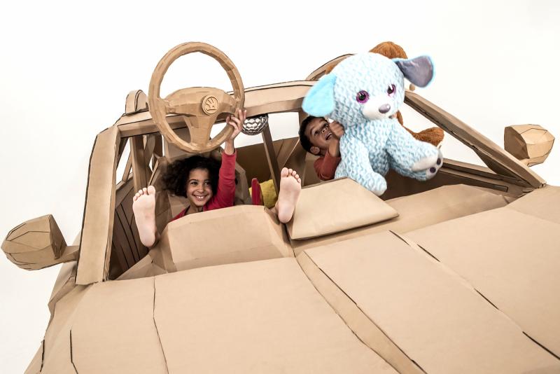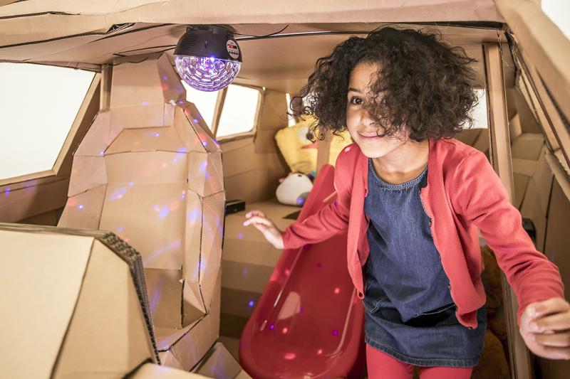 Bár az autó nagy része kartonpapírból készült, ez nem az egészére vonatkozik, ugyanis egy iPadot és egy játékkonzolt is beépítettek a műszerfalba, amelyeken a gyerekek videojátékokon játszhatnak, sőt, vannak vezeték nélküli hangszórók és még egy sokszínű diszkógömb is.