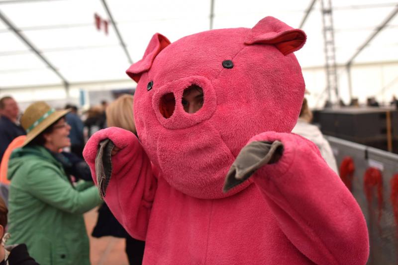 13:00 Elkezdődött a mai második bemutató disznóvágás a Kolbászklub sátra mellett.