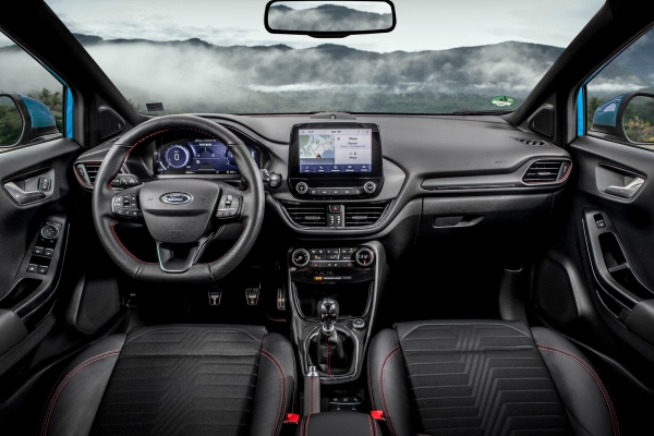A fedélzet formavilága tulajdonképpen fordos és noha néhány analóg gomb megmaradt a vezérlés jórésze már az érintőképernyőn eszközölhető. A Puma az ST-Line felszereltségnél már teljesen digitálisa műszerfal, aminek grafikus elrendezése eltér a márka korábbi sémájától.