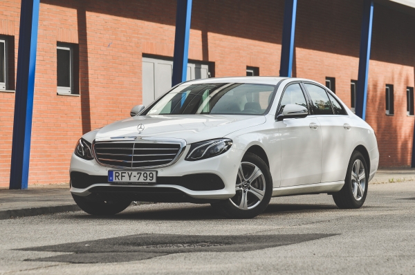 Ez a Mercedes itt 12, azaz tizenkettő millió forint. Hogy pontosak legyünk, 11,8 millió forint a listaára. Ő most az E-osztály hazai modellpalettájának legalja, és mindösszesen annyiba kerül, mint egy közepesen jól felszerelt felső-középkategóriás. Azoknál viszont egy jóval finomabb tárgy. Egy Mercedes-Benz. És lehet akármennyire fapados, a gyökereit nem képes megtagadni.