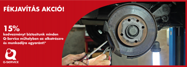 A Q-Service hálózat kampányt hirdetett fékjavításokra. A nem gyári besorolású (utángyártott) alkatrészekkel elvégzett fékrendszer karbantartások alkatrészárából és munkadíjából 2020. április 20-tól 15%-os kedvezmény jár minden partner műhelyben.