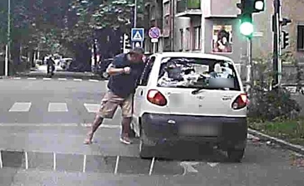A képeken látható férfi vélhetően azon háborodott fel, hogy a Daewoo Matiz vezetője néhány méterrel korábban dudálással fejezte ki rosszallását az úttesten átkelő gyalogossal szemben. Az eset május 23-án 17 óra 30 perc után történt Kaposváron, a Szent Imre és a Sommsich Pál utcák kereszteződésében, ahol a piros lámpánál az ismeretlen gyalogos utolérte a sofőrt, majd az álló miniautóhoz lépve ököllel ütlegelni kezdte őt az ablakon keresztül.