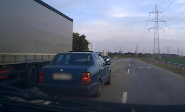 A manőver során az előzött személygépkocsi és a teherautó között elhaladva a járművek csak mindössze néhány centiméter távolságra voltak egymástól. Ezt követően az autó elé hajtva K. István szándékosan, intenzíven fékezett, majd az ablakon kihajolva szidalmazta a sofőrt és utasait. A 32 éves férfi a kockázatos manőver közben a szabályosan közlekedő autóst többször fékezésre kényszerítette, közvetlen balesetveszélyt előidézve. Cselekményéről a másik autó menetrögzítő kamerája felvételt készített.