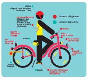 A biztonságos bringázás kellékei, ahogy a franciák oktatják (kép: Prévention Routiére)