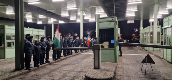 Az Országos Rendőr-főkapitányság vezetője, Balogh János rendőr altábornagy és a Román Határrendőr Főfelügyelőség vezetője, Cornel-Laurian Stoica főfelügyelő jelképesen, közösen nyitották meg a Magyarország és Románia között húzódó államhatárt. Az ünnepségen a Magyar Rendőrség Zenekara megszólaltatta a két ország és az Európai Unió himnuszát. A vezetők romániai idő szerint 2025. január 1-jén 0 órakor közösen nyitották fel a sorompót a csanádpalotai autópálya határátkelőhelyen. A magyar-román határszakasz további átkelőhelyein hasonló ünnepség keretében került sor a határnyitásra.