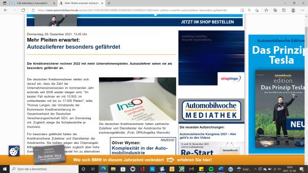 A hitelbiztosítók kiemelten veszélyeztetettnek tartják az autóipari beszállítókat és szolgáltatókat. A chipek hiánya miatt milliárdos árbevételtől estek el, ugyanakkor nagy összegeket kellene befektetni az alternatív hajtások felé történő szerkezetváltásba.