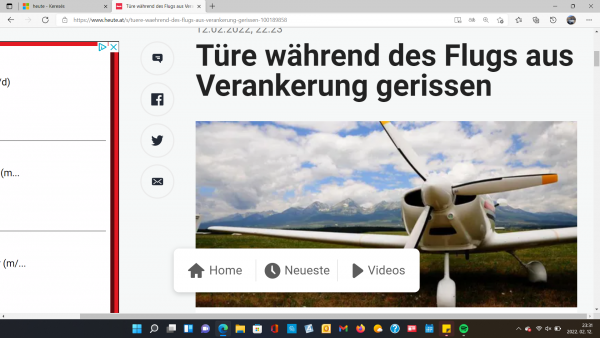 Szombat délután egy 68 éves muraui járásbeli pilóta kisrepülőgépével felszállt a klagenfurti/wörthersee-i repülőtérről Stájerország irányába. Ami ezután történt, a horror volt. Ugyanis 15:00 körül a pilóta ajtaja repülés közben ismeretlen okból kinyílt.