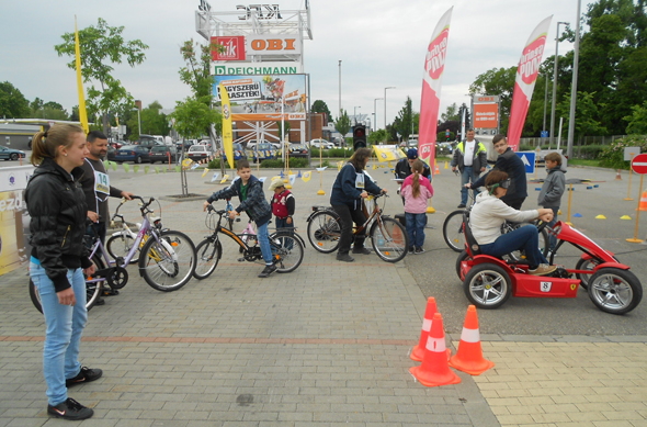 Bicikli nélkül nincs Közlekedik a Család vetélkedő, természetesen Kecskeméten sem volt. Volt viszont minimum 6 féle kerékpárméret, így mindenki hozzá illő kétkerekű nyergébe szállhatott. És volt autósügyességi is a bóják között, itt a férfiak mellett a nők is jól teljesítettek. Nem jellemző szám az ilyen családi nap jellegű versenyen a normál közúti forgalomba történő vezetés, pedig ezt műveljük leggyakrabban. Kecskeméten úgy gondolták, ezt is beiktatják a vetélkedőbe. És utána ki is értékelték a produktumokat: 16-ból ketten mentek volna át a vizsgán – egy kis jó akarattal.