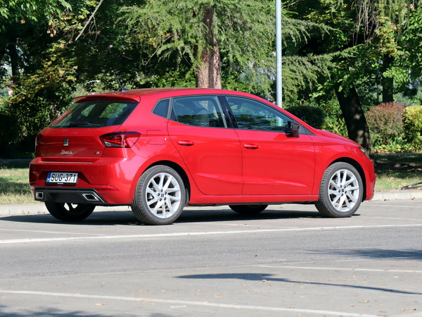Az Ibiza FR felszereltséggel érkezett hozzám, 110 lóerős egyliteres turbómotorral. Hátulról a kamu kipufogóvégekkel szédít a kisautó, oldalról a 17-es könnyűfém kerekek tűnhetnek fel, a magyar utak minőségéhez képest a kelleténél peresebb abroncsokkal.