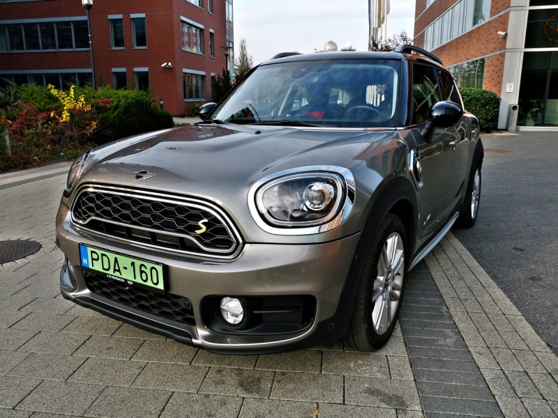 A motortérben tekintélyes merevítések találhatók, könnyű terepen is érezhető volt a Minikre általában is jellemző gokartos kasztnimerevség. Ezzel szemben a járt utak elhagyásához nem a legjobb partner az iPerformace futómű, sőt! Családi autóhoz kissé keménynek bizonyult még szilárd burkolaton is. A központi műszeregységen jól követhető a hajtáslánc működési folyamatábrája, melyet egy eDrive kapcsolóval befolyásolhatunk. Normál, azaz Auto eDrive üzemmódban 125 km/h-ás tempóig és 7 százalékos akku töltöttségig autózhatunk kipufogás nélkül. Benzinhasználat mellőzésére a MAX eDrive üzemmód áll rendelkezésre, ilyenkor csak a hátsó kerekek hajtanak, Save Battery esetén pedig az akksi töltöttségi szintjét rezerválhatjuk a városi használatra. A 7,6 kWh-ás akkupakkot otthoni hálózaton keresztül kicsivel több, mint 3 óra alatt tölthetjük fel, Type2-es kábel esetén ez az intervallum egy órával lerövidíthető.
