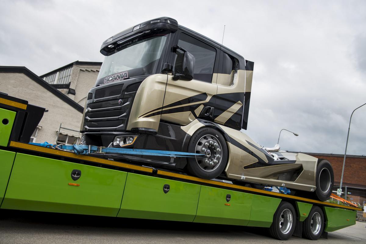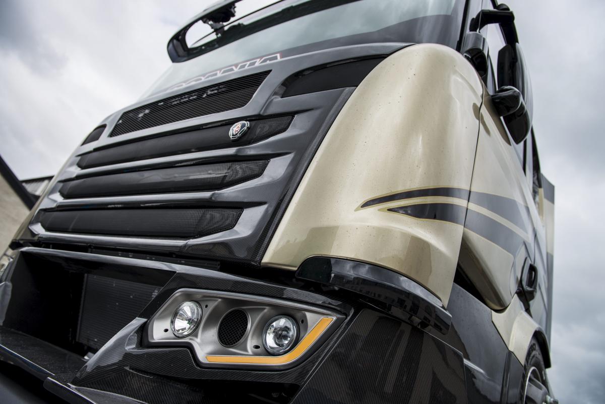 „Korábban gondolkodtunk azon, hogy retro hatása legyen a kocsinak, de végül egy minden szempontból modern teherautó született.” – tette hozzá Richter úr. „Erőteljes versenyautós jegyek is felismerhetők rajta. De ugyanakkor végig odafigyeltünk, hogy a jellegzetes Scania elemeket megtartsuk, miközben a jövő felé néztünk.”