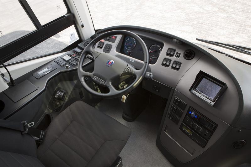 A járművezetők szempontjából a már megszokott Scania minőséget és kényelmet nyújtja a busz. A kezelőszervek ergonómiai kialakítása kiemelkedő: a sebességváltót és a retardert is beleértve, a kormányoszlopról irányítható minden. A járművezető ülése fűthető.