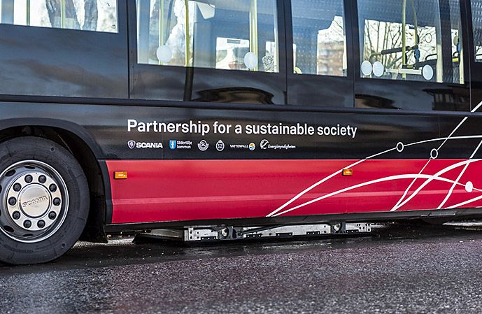 A Scania szülővárosában, Södertäljében, 2016 decemberében üzembe állítottak egy vezeték nélküli indukciós töltőtechnológiával ellátott Scania elektromos hibrid városi buszt, a Scania és a stockholmi KTH Királyi Műszaki Intézet (KTH Royal Institute of Technology) közös kutatási projektje keretében. Az akkumulátorokat vezeték nélküli technológiával töltik, amíg a busz a végállomáson áll, csupán hét perc alatt ellátva a járművet a 10 kilométeres járatának teljesítéséhez szükséges energiával.