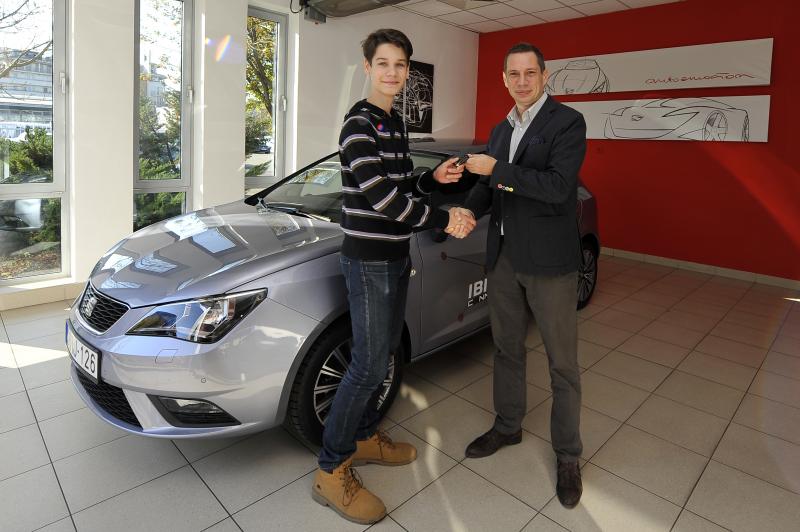 Bánki Beni (b), a 2015-ös Ki Mit Tube győztese és Papp Zoltán, Seat márkaigazgató