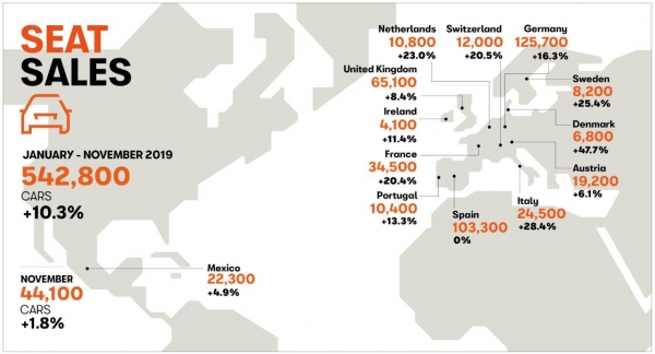 November hónapban a SEAT szintén új kiszállítási csúcsot ért el, 44 100 átadott autóval ugyanis 1,9 százalékkal sikerült meghaladnia a 2019. novemberében regisztrált eredményét. Ezzel a vállalat történetének eddigi legjobb novemberét zárta, túlszárnyalva az eddigi csúcsnak számító 2018. novemberi 43 300 darabos eredményt.