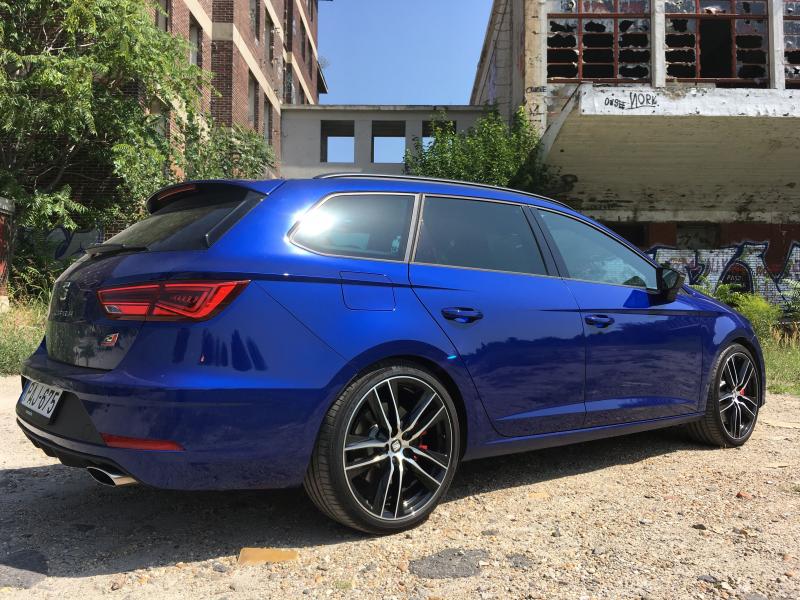 A Seat Leon sokkal több, mint az azonos platformra épülő Golf klónja. Igazi szépség, latin lover. A tervezők nem rontották el a kombi arányait sem, férfias, kiegyensúlyozott és arányos. A Cupra változat nem túl hivalkodó, de harsány kék fényezés, a hatalmas kerekek és a vörös féknyergek azért árulkodnak. A Cupra logós hűtőrács már-már klasszikusnak számít, a hátsó szpojler diszkréten javítja az aerodinamikát. A dupla kipufogóvég merész menettulajdonságokról árulkodik. A beltér még ennél is visszafogottabb. A hangulatvilágítás elegáns és testre szabható: nyolcféle szín áll rendelkezésre. A sportos hangulatról a motor, a váltó és a futómű mellett a kifejezetten benzingőzzel táplálkozóknak készült információs rendszer is gondoskodik: aktuális információkat kapunk az olajhőmérsékletről, a turbónyomásról és a nehézségi gyorsulásról.