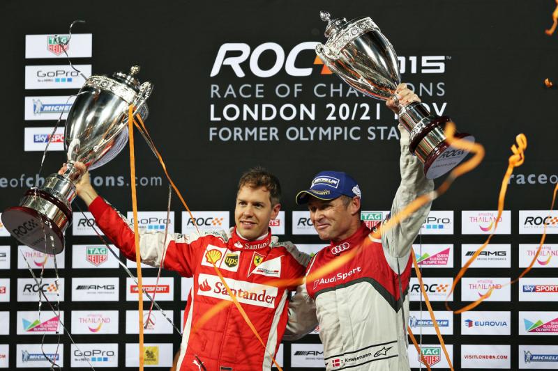 Húsz versenyző közül Sebastian Vettel nyerte meg szombat délután a Race of Champions gálát, amely a motorsport legnagyobb alakjait hívta össze egy kis év végi gálaversenyre a londoni olimpiai stadionban.