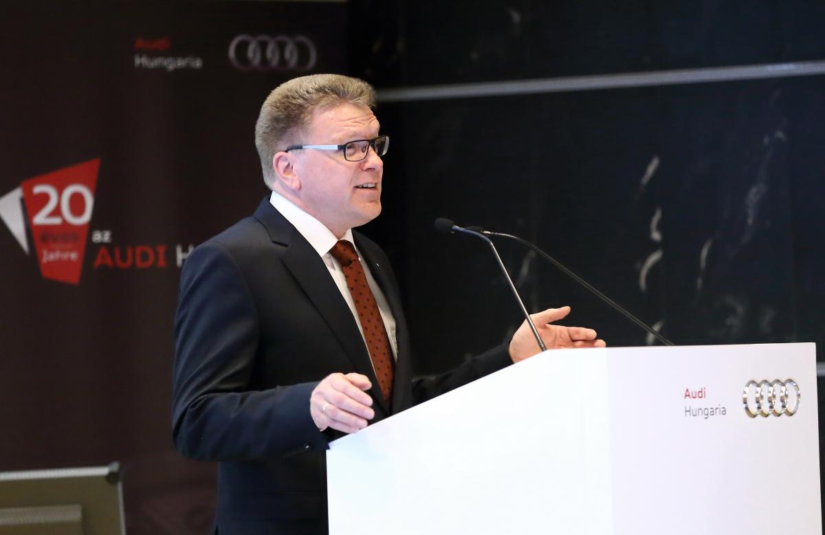Száztíz százalékosan vagyunk elégedettek a magyar munkatársainkkal. A magyar csapat olyan szintre fejlődött, hogy egy kis motorgyárból motor- és járműgyárrá fejlődött, ahol a komplex gyártási folyamatot leképezzük, teljes értékű járműgyárat üzemeltetünk Győrben. Az A3 limuzint nagyszerű minőségben készítik. Vagyis nyugodtan mondhatom, az Audi AG igazgatótanácsa nagyon elégedett a magyar munkatársakkal. Meg kell még említenem, hogy Győrben működik a világ legnagyobb motorgyára, ahol kétmillió motor gyártunk, megbízható, magas minőségben.