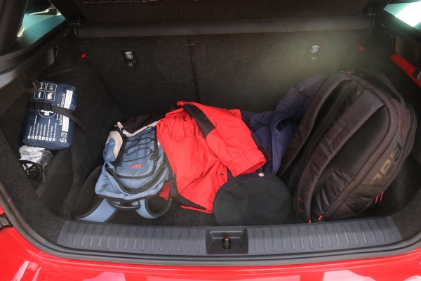 A kompakt jármű dizájnról nem szeretek hosszasan értekezni, beszéljenek a képek. A Skoda is azt mondja, hogy tulajdonosa többnyire belülről látja autóját, és ott van is min legeltetni a szemünket. A piros szegélyű ülések nemcsak mutatósak, hanem jól is támasztják, tartják a testet, és minden irányban kellő mértékben állíthatók. Hacsak nem kosárlabdás termetű valaki, jól érezheti magát. Hatásukat multifunkciós bőrkormány és alumínium pedálsor fokozza. A poggyásztér 400-1395 literes, és van benne rakományrögzítő gyűrű, táskaakasztó fül, valamint tároló rekesz.