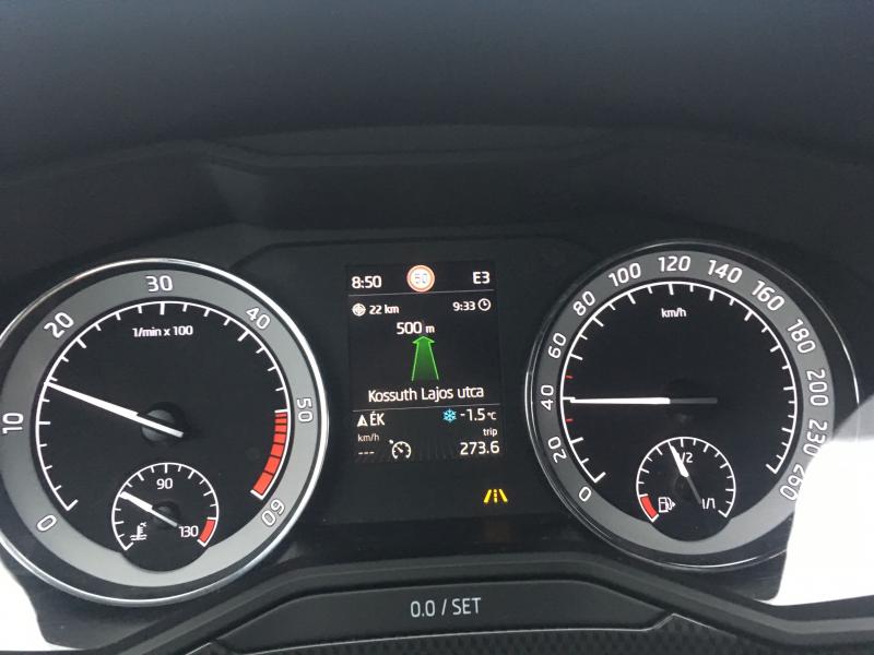 A legnagyobb Skoda limuzin színültig van okosságokkal. Ilyen a parkolójegytartó, a tanksapka fedélbe rejtett jégkaparó, az ajtókba rejtett két esernyő vagy a csomagtér elemlámpája. A Sportline felszereltségben vad dizájnú felniken 235/40 R19-es Continental téli gumik feszültek, sok a szpojler, a küszöbökön nem érezzük túlzásnak, de a csomagtartó szélén már az.