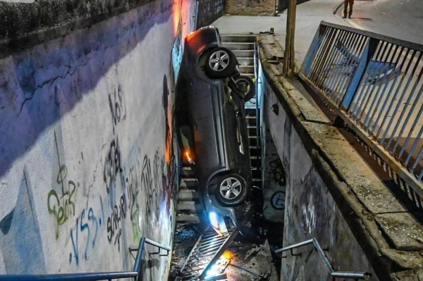 A jármű letért az útról, áttörte a korlátot, majd szó szerint „bezuhant” egy gyalogos aluljáró lépcsőjére, ahol végül megállt. A helyzet súlyosságát jól mutatja, hogy az aluljáróban akár gyalogosok is tartózkodhattak volna – a baleset így könnyen tragédiába torkollhatott volna.