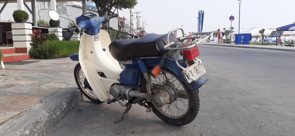 Érdekes az is, hogy milyen sok régi robogón látni kardánhajtást, ez dolgozott a már meglehetősen ütött-kopott rendszámú Yamahán is. Nem igazán folyt sem a hajtómű-, sem a motorolaj, inkább kellemesen poros, itt-ott kicsit rozsdás volt a szerkezet. Az is látszott rajta, hogy csak a legszükségesebb dolgokat csinálták meg rajta, a szigetelőszalaggal házilag rögzített indexlámpák kicsit lefittyentek ugyan, de működtek. De nem csak Yamaha, hanem Honda robogók is szép kort érnek meg Görögországban, ahol jó eséllyel egész évben használhatók ezek a közlekedési eszközök.
