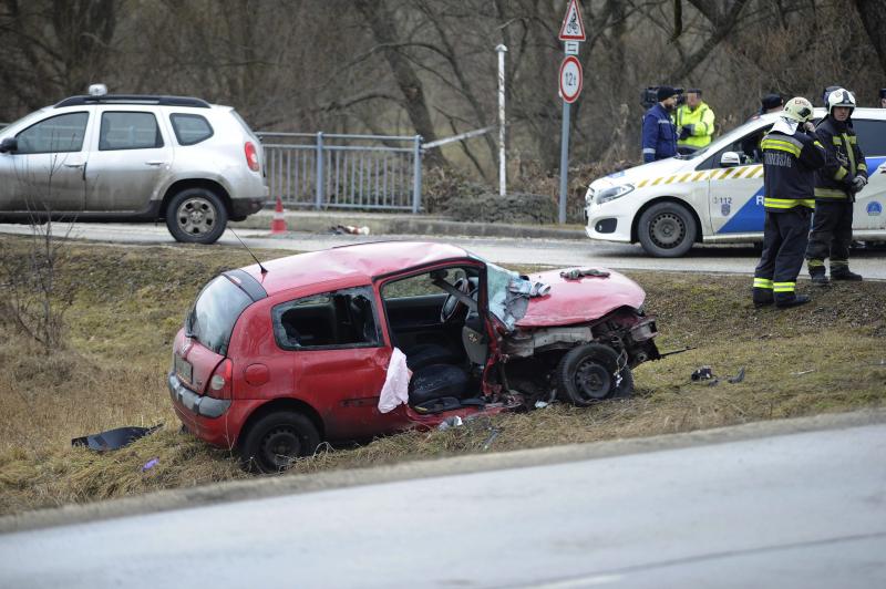 Összetört gépjárművek Biatorbágyon, ahol két személygépkocsi és egy kisteherautó karambolozott 2017. február 21-én. A balesetben egy ember meghalt. MTI Fotó: Mihádák Zoltán